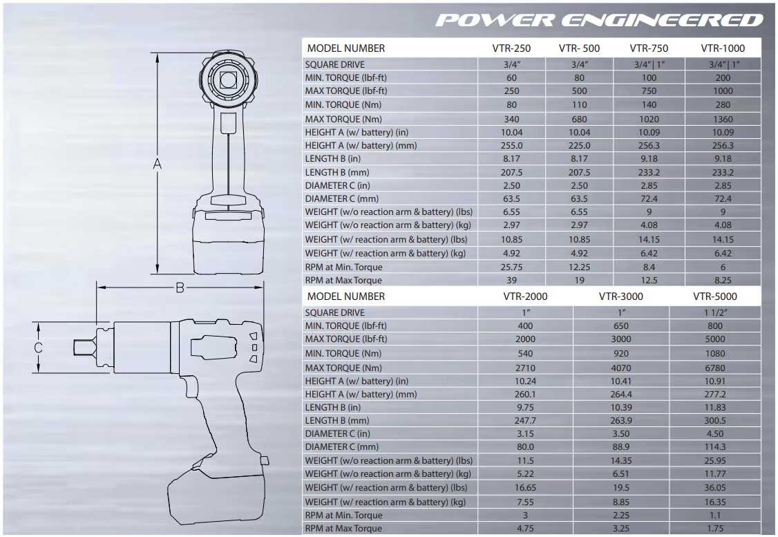 De nauwkeurig ontworpen borstelloze motor van de Volta levert efficiëntie, langere bedrijfstijd en langere duurzaamheid, terwijl het configureerbare koppelbereik zorgt voor gebruiksgemak en herhaalbaarheid. De interne borstelloze technologie van het gereedschap zorgt er ook voor dat de sleutel koeler werkt, waardoor veiligheid bij boutverbindingen en veelzijdigheid in ruwe omgevingen wordt geboden. Extra functies zijn onder meer een digitaal display, instellingen voor koppelgeheugen, automatische reactiearmontgrendeling en conversie van ft / lb naar Nm. Neem vandaag nog contact met ons op voor een gratis demo!