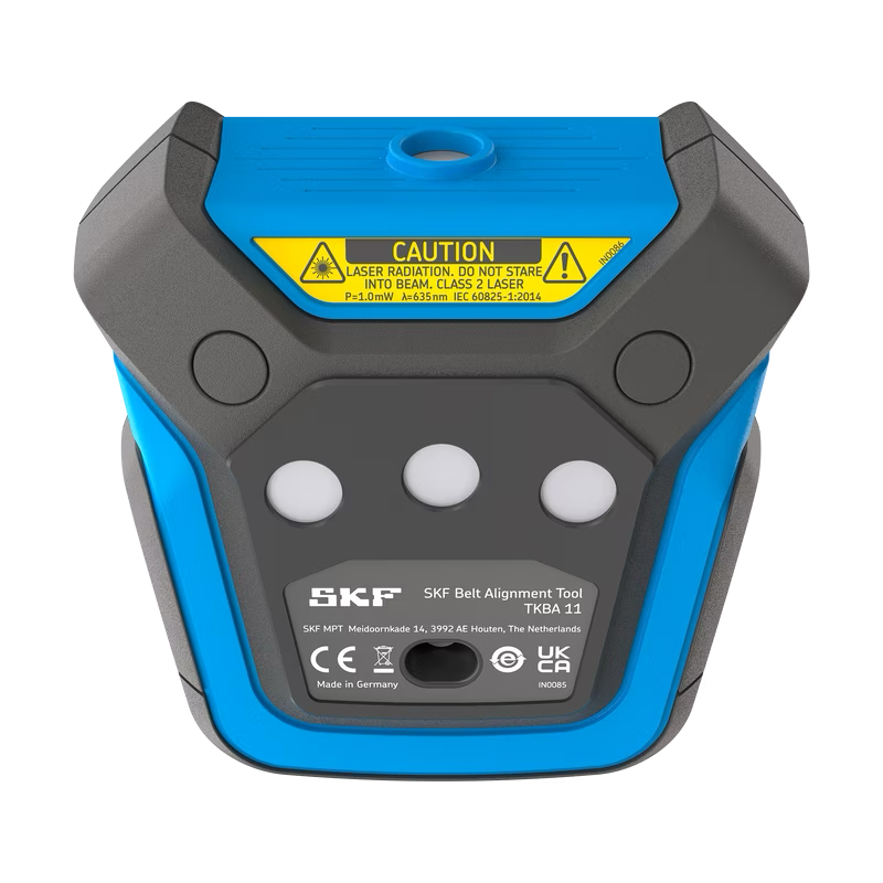 Het gereedschap bestaat uit twee componenten: een laserzendende eenheid en drie passieve doelen. Elk ervan wordt snel en gemakkelijk bevestigd - met behulp van een krachtige magneet - aan de binnen- of buitenkant van een riemschijf of kettingtandwiel. De TKBA 11 kan worden toegepast op de meeste machines die V-riemen, gekoppelde riemen en geribbelde riemen gebruiken - evenals die met kettingtandwielen. Er wordt een laserkijn geprojecteerd vanuit de zendende eenheid naar de passieve doelen - die zijn gemonteerd op de tegenoverliggende schijf. Het gereedschap corrigeert vervolgens voor verticale hoek, horizontale hoek en parallelle onjuiste uitlijning - inclusief combinaties van alle drie. -